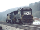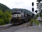 CSX coal drag on Norfolk Southern tracks at Watkins. |