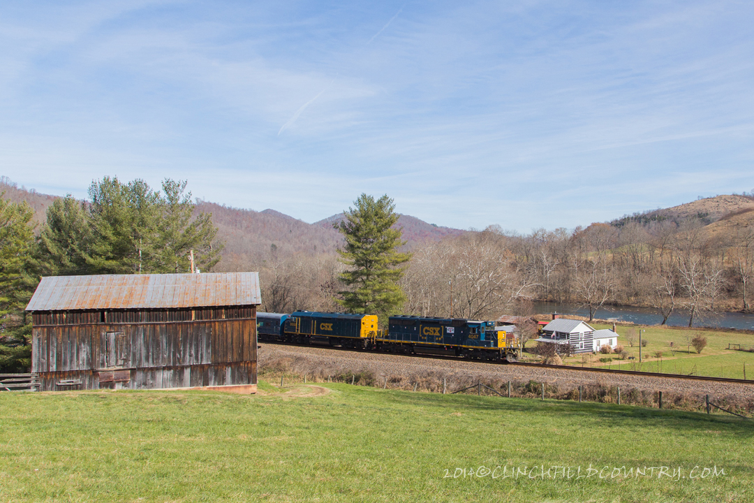 Great view and location along the route is Osborne Curve just north of Dungannon, VA.