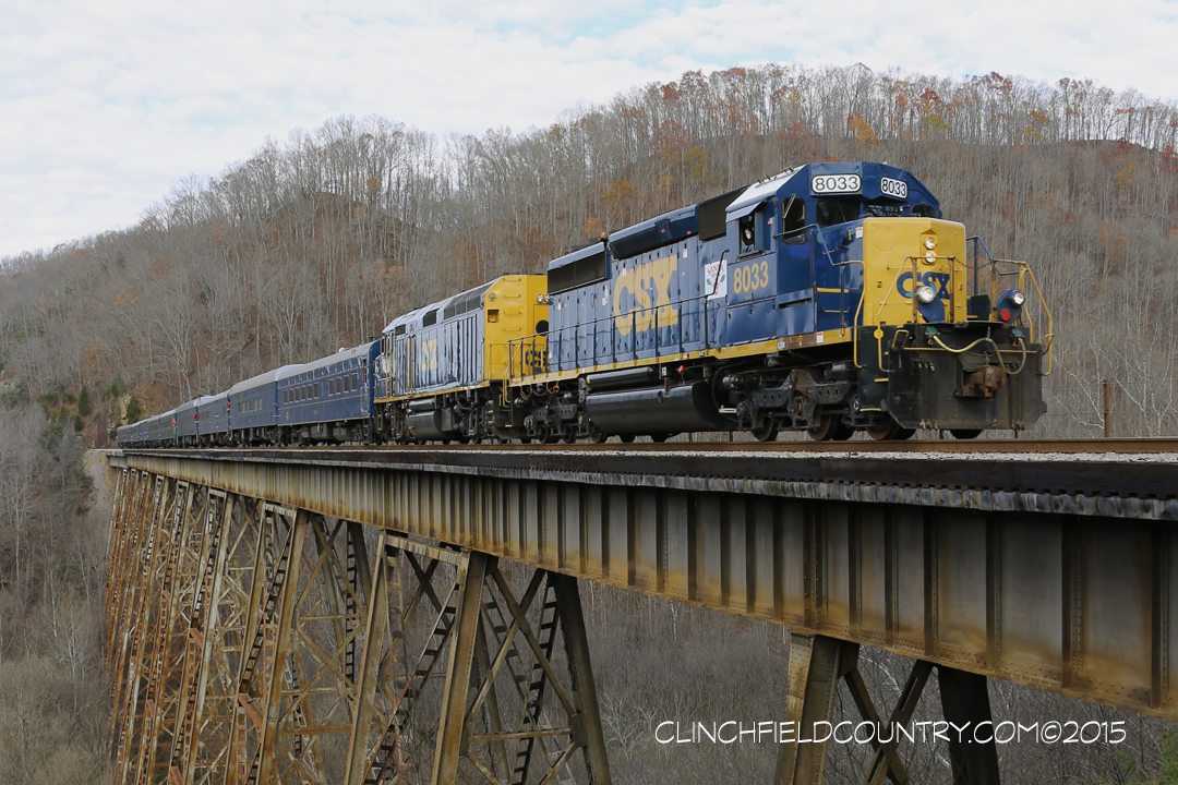 The 2015 CSX Santa Train glides across Copper Creek, not easily accessed but well worth the view once you arrive at the top.
