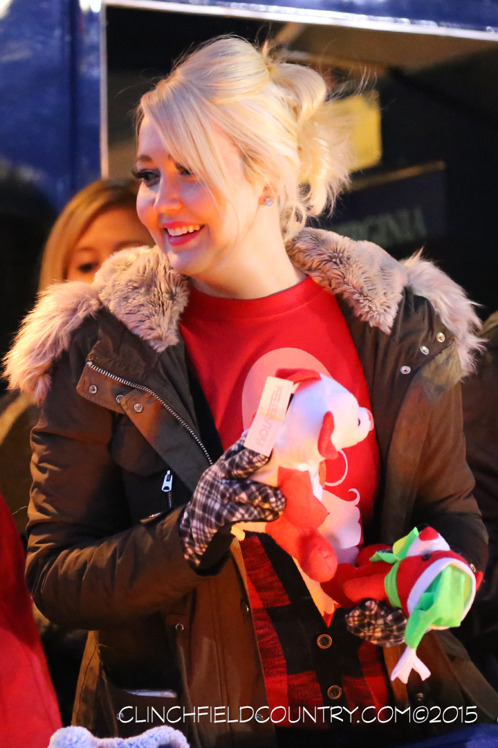 Meghan is all smiles as she watching the kids catch the candy and toys in Marrowbone, KY.