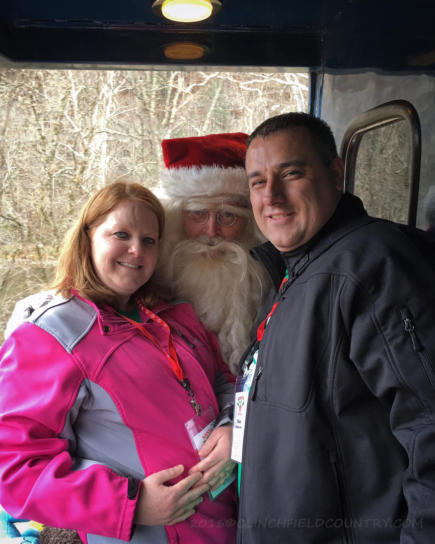Santa pauses for a photo with Santa Train volunteers EKB News Reporter Chris Anderson, and his wife, Debbie.